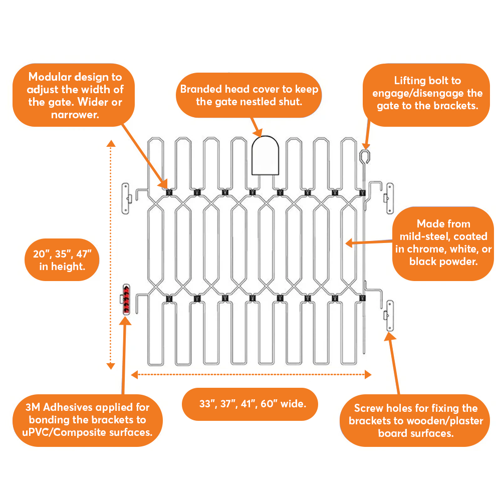 • Stops Escapes & Protects Your Family - Blocks pets up to 50 lbs from racing upstairs, bolting through the front door, or sneaking into rooms.
